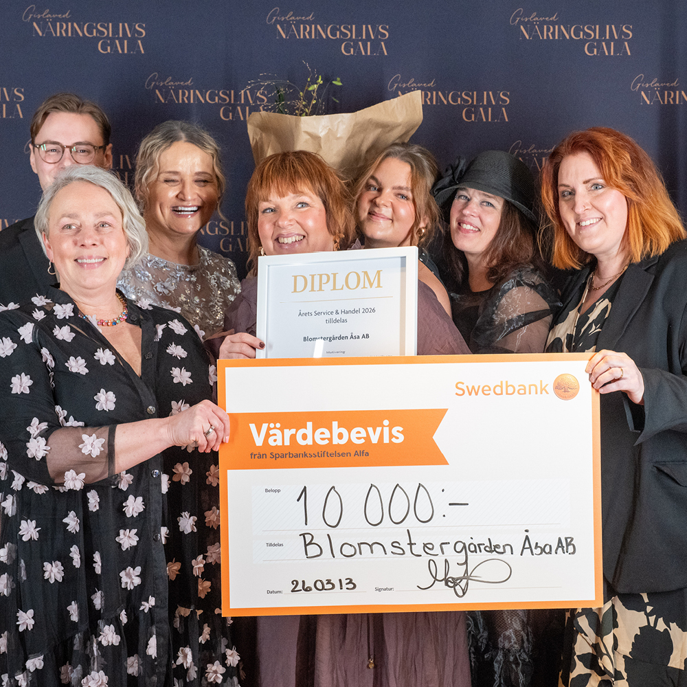 Årets service- och handelsföretag är ett pris som är framröstat av folket och delades ut av Swedbank genom Sparbanksstiftelsen Alfa, och i år gick det till Blomstergården ÅSA AB
