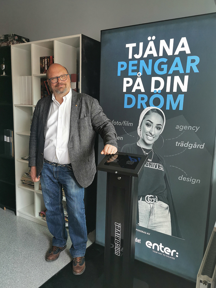 Kommunens fyra högstadieskolor blev erbjudna en UngDrive monter, Åsenskolan och Ölmestadsskolan var intresserad av att testa på konceptet. Därav blir Åsenskolan i Anderstorp och Ölmestadskolan i Reftele först ut i landet att införa skärmarna på skolorna. Skärmarna är placerade där det naturligt rör sig många elever och ska stå där permanent för att väcka ungdomars nyfikenhet, intresse och vilja att starta företag. Skärmarna invigdes under veckan med en workshop där eleverna fick pitcha sina idéer till varandra. Efter avslutad pitch dök GB-glassgubben upp och bjöd eleverna på glass. På plats för invigningen var förutom Enter och UngDrive även representant Ulf Lorentzon från organisationen Företagarna, ordförande för Anderstorps näringlsivsförening Anders Ohrgren, representant för Gislaveds näringslivsförening Mahsa Farajollahi, ordförande Gislavedsregionens näringslivsråd Niclas Palmgren och GB-gubben som kommer från Ica i Anderstorp.