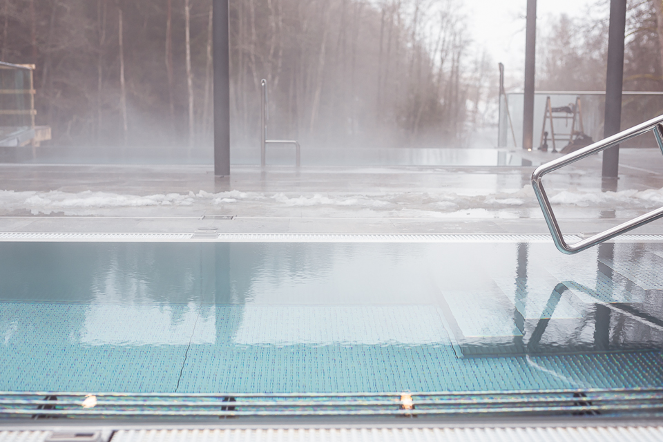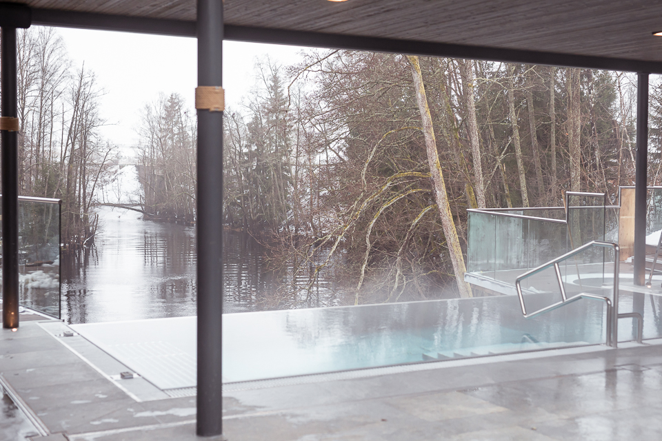 I spa-anläggningen finns tre varma utomhuspooler, varav en bubbelpool, alla med utsikt över Nissan som flyter fram utanför anläggningen. Johan och Amanda berättar att gästerna idag gärna vill sitta ute, men fortfarande ha det varma, varför man här har satsat på att enbart ha utomhuspooler. Vill man sitta inne finns relaxrum, bastu och en loungedel med fantastisk utsikt. I loungedelen kan man även ta en drink eller något att äta från caféet. Vidare är det också på gång en terrass och brygga nere vid Nissan, för möjligheten att ta sig ett mer svalkande dopp i ån.